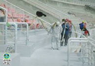 As the success of polyurea technology widely applied to large infrastructures of the 29th Beijing Olympic Games, such as Beijing-Tianjin intercity rail way, Water Cube, Beijing South Railway Station, especially Bird’s Nest Stadium, the Jinan Olympic Center officials make a wise decided without hesitation to chose polyurea coating as stadium stands decorating and concrete protection. “We selected this coating system because it is stain-, UV-, and abrasion-resistance, and it will ensure a long-lasting-and good-looking-surface for years to come,” comments as one anonymity official.”Furthermore, we have reason to believe this project will make big success under supervision under Qingdao Technological University”