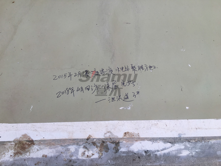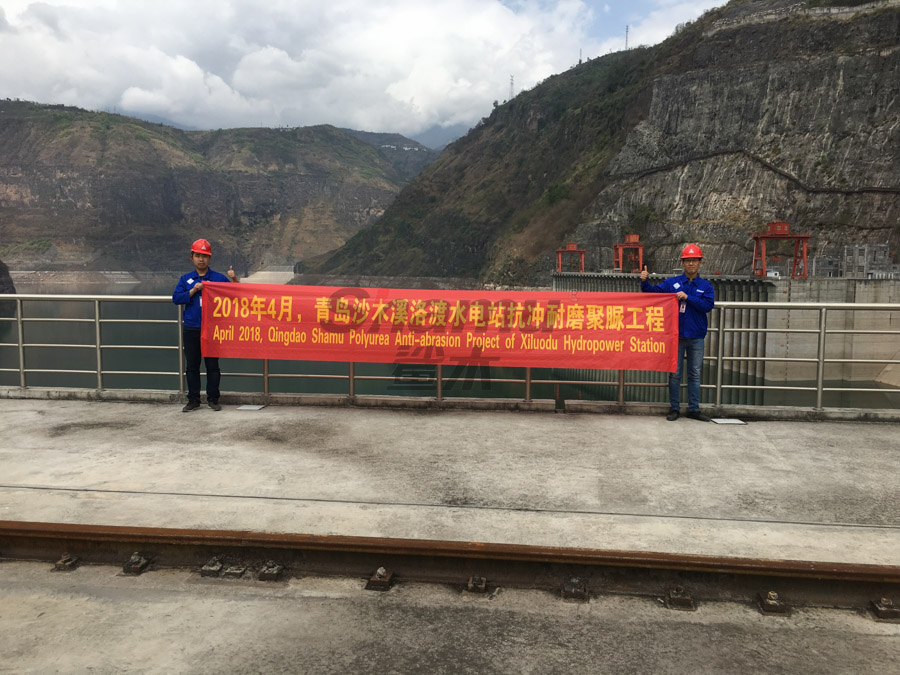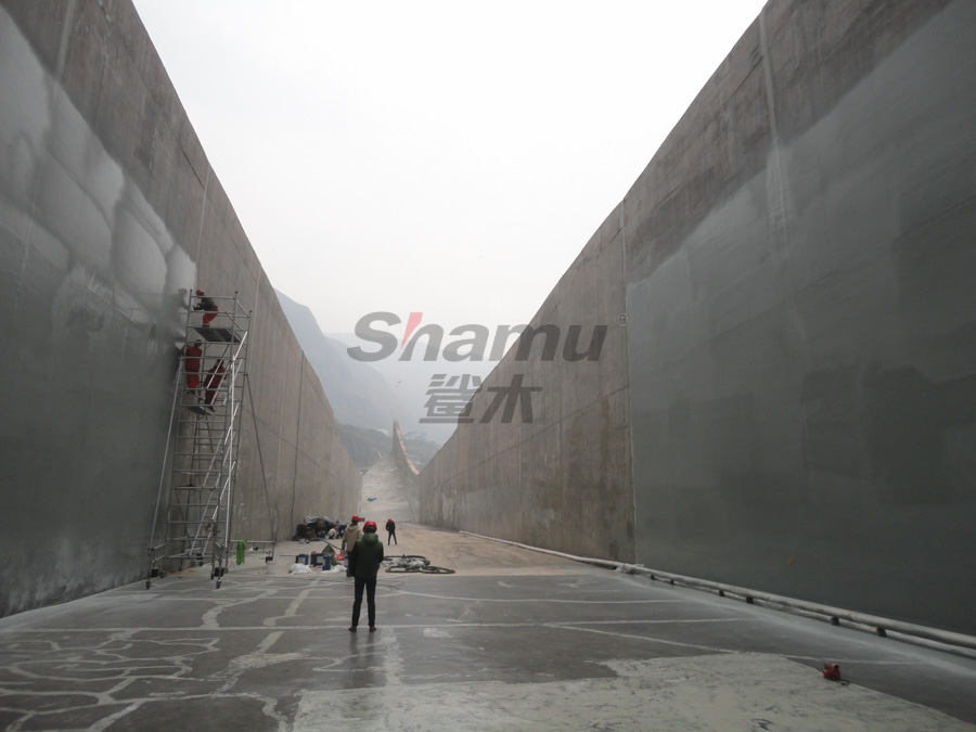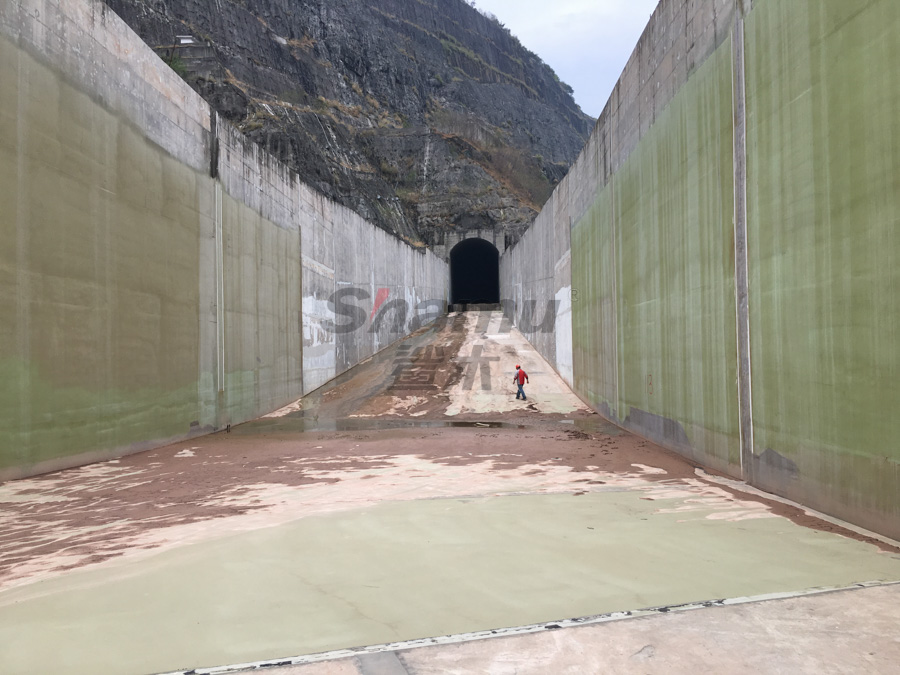 由于每年汛期水流對泄洪道的沖刷極為嚴重,我公司于20152月對該水電站的3號泄洪道進行了噴涂聚脲加固工程。分兩個區域施工,一區域為泄洪道的出口處;二區域為泄洪道渦流處。每年的67月份多雨季節泄洪,泄洪時水流速度為40-50/秒,對泄洪道的破壞巨大,使用聚脲材料前,每年都要對泄洪道等部位的混凝土大面積修補。近日,我公司接到甲方通知,對水電站蓋板區域進行聚脲噴涂加固,同時有幸回訪了2015年施工的部位,觀察發現,目前3號泄洪道已經使用三年多的時間,聚脲涂層完好,未見脫層、開裂等破損現象,極好的保護了混凝土基材,得到了業主的高度認可。
