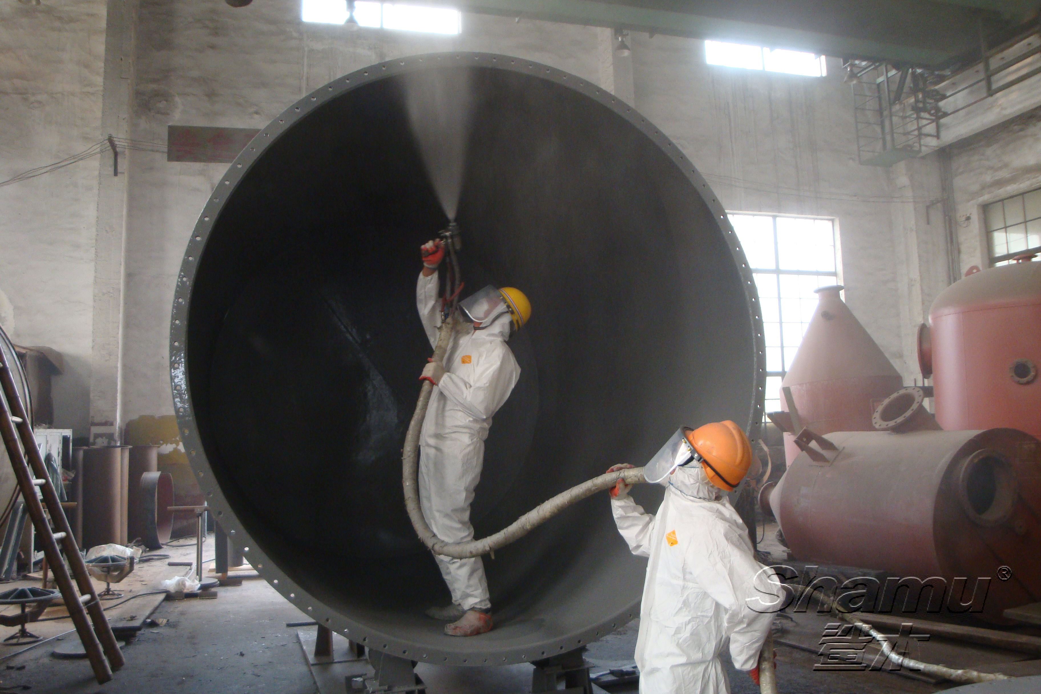 施工時(shí)必須使用青島沙木國(guó)際貿(mào)易有限公司指定的高溫、高壓撞擊混合設(shè)備。使用未經(jīng)我們驗(yàn)證可行的設(shè)備施工帶來(lái)的損失,后果自負(fù)。
