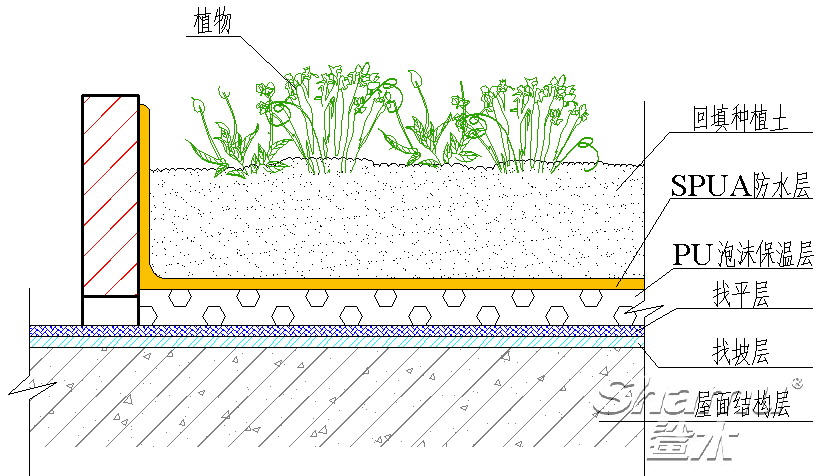 Qtech-410可形成不同厚度的堅硬涂膜,防水的同時具有優異的抗植物根莖穿刺性能。Qtech-410對潮氣和濕度不敏感,可在惡劣的環境條件下應用。Qtech-410種植屋面體系如圖1所示: